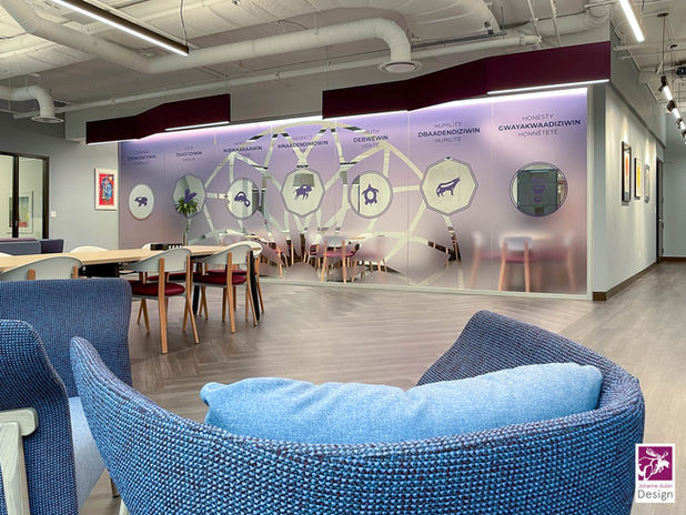 The AFN unites all the First Nations of Canada. This unifying force is symbolized as soon as visitors arrive. They are immediately immersed in the occupation of ancestral territory by over 600 communities and some 900,000 native people living in Canada. By showcasing the AFN’s unique collection of artworks throughout the various workspaces, it’s easy to sense the rich and precious diversity of their identities.